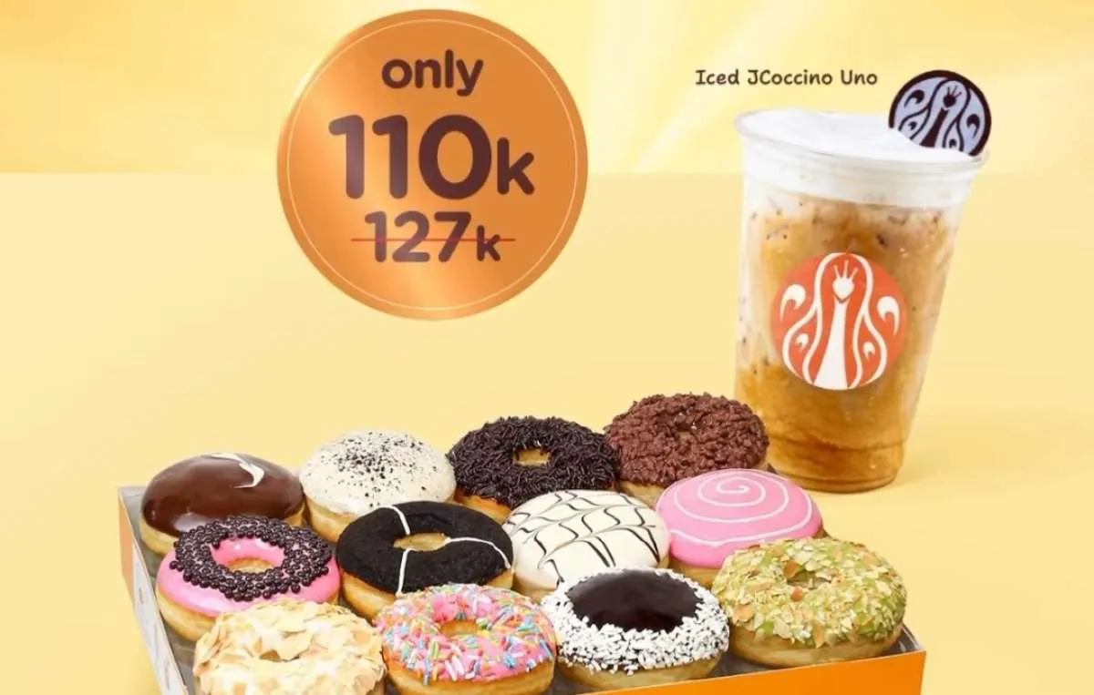 Dikutip dari Instagram JCO Indonesia, hanya dengan Rp 110.000, Anda bisa mendapatkan 1 Dozen Donuts + Iced Jcoccino Uno, yang harga normalnya Rp 127.000. Hemat banget kan?