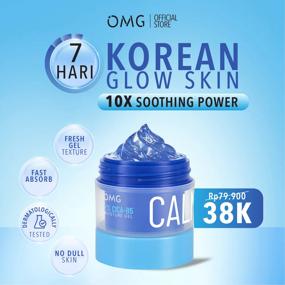 OMG 2% Cica-B5 Moisture Gel diperkaya dengan 2% Cica-B5 yang efektif untuk menenangkan dan memperbaiki skin barrier. Zinc untuk mengontrol minyak dan membantu melawan jerawat. Plus, Hyaluronic Acid untuk melembabkan kulit tanpa rasa berminyak.