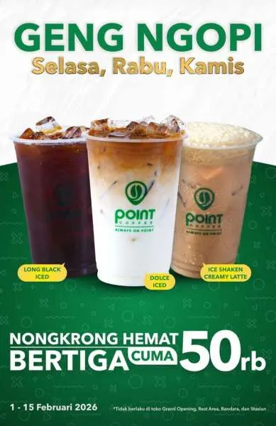 Yuk, serbu promonya sekarang juga di Point Coffee terdekat dan nikmati minuman favorit Anda yang lebih hemat sebelum kehabisan!