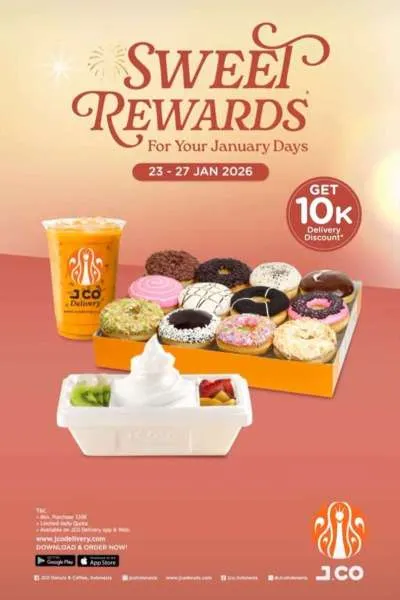 Mulai dari donut hingga beverage favorit bisa Anda nikmati dengan lebih hemat mulai 23-27 Januari 2026 saja. Cocok banget untuk menemani hari-hari Anda dengan yang manis-manis biar makin good mood.