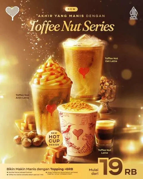 Dikutip dari Instagram Kopi Kenangan Indonesia, promo Toffee Nut Series menyediakan tiga varian mulai Rp 19.000 saja. Berikut varian-variannya yang bisa Anda nikmati: