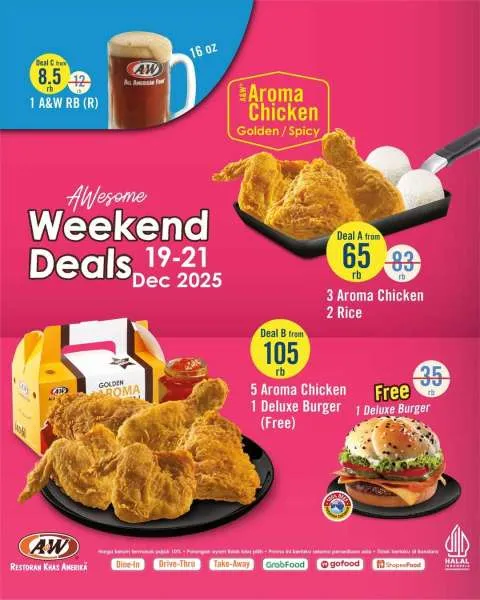Yuk, serbu promonya sekarang juga di A&W terdekat dan nikmati paket hemat Aroma Chicken favorit Anda sebelum kelewatan!
