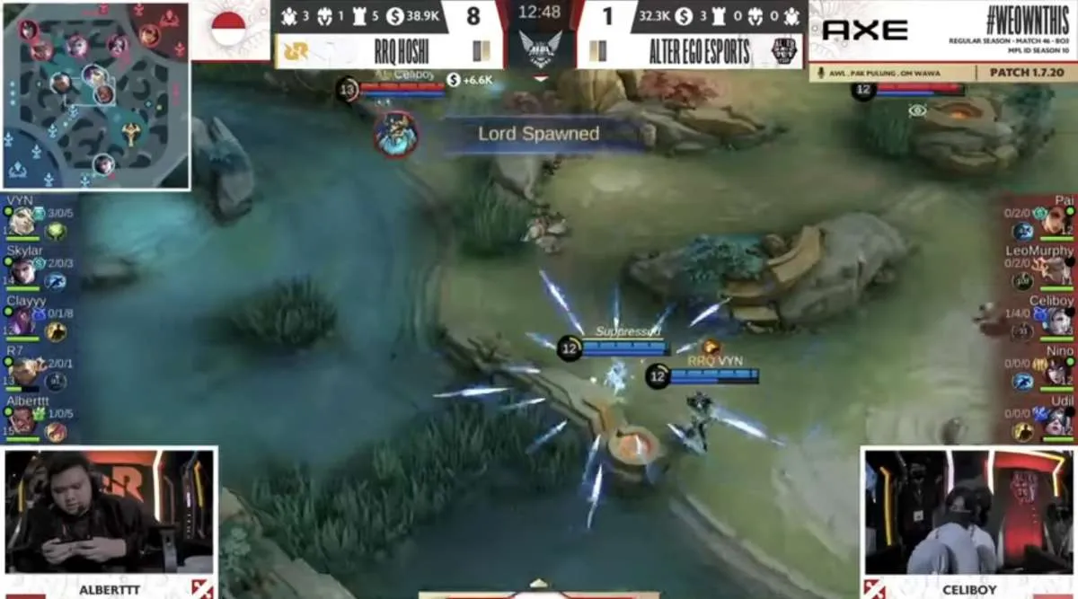 RRQ Clay tampil menawan dengan timing yang pas saat menggunakan Yve untuk melawan Celiboy yang menggunakan Aamond. Clay dua kali terhindar dari damage yang begitu besar dari Aamond yang berperan sebagai jungler dari Alter Ego. Clay menggunakan winter truncheon Aamond melakukan ultimate skill.