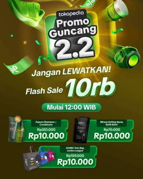 Dikutip dari Instagram @tokopedia, ada flash sale Rp 10.000 diskon 50% yang sudah menanti. Apa saja produk-produk yang bisa Anda dapatkan?