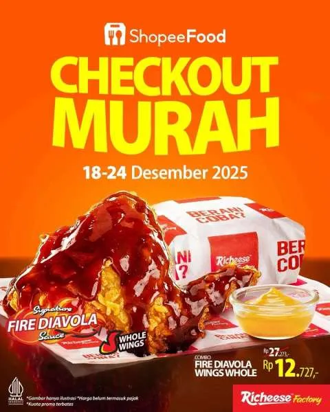 MOMSMONEY.ID - Yuk, checkout Combo Fire Diavola Wings Whole di Richeese Factory sekarang! Lagi ada promo spesial yang berikan harga super hemat hanya Rp 12.000-an saja. Berlaku mulai 18-24 Desember 2025 saja lo.