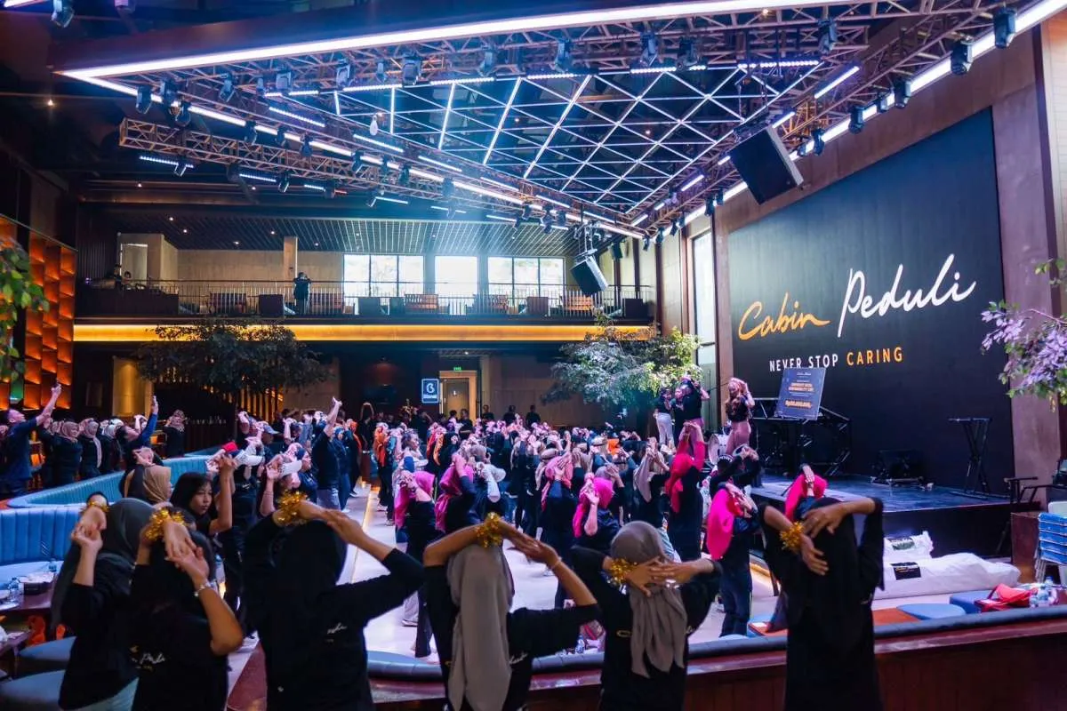 Salah satunya datang dari Cabin Peduli, inisiatif sosial dari Holywings Group, yang rutin mengadakan kegiatan senam sehat bersama untuk warga sekitar.