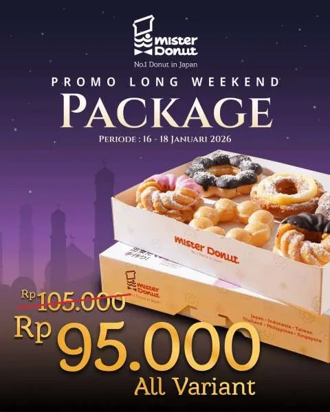 Promo hanya bisa Anda dapatkan dengan pembelian langsung di outlet Mister Donut terdekat selama periode 16-18 Januari 2026 saja ya. Jadi, pastikan Anda tidak melewatkan kesempatan ini.