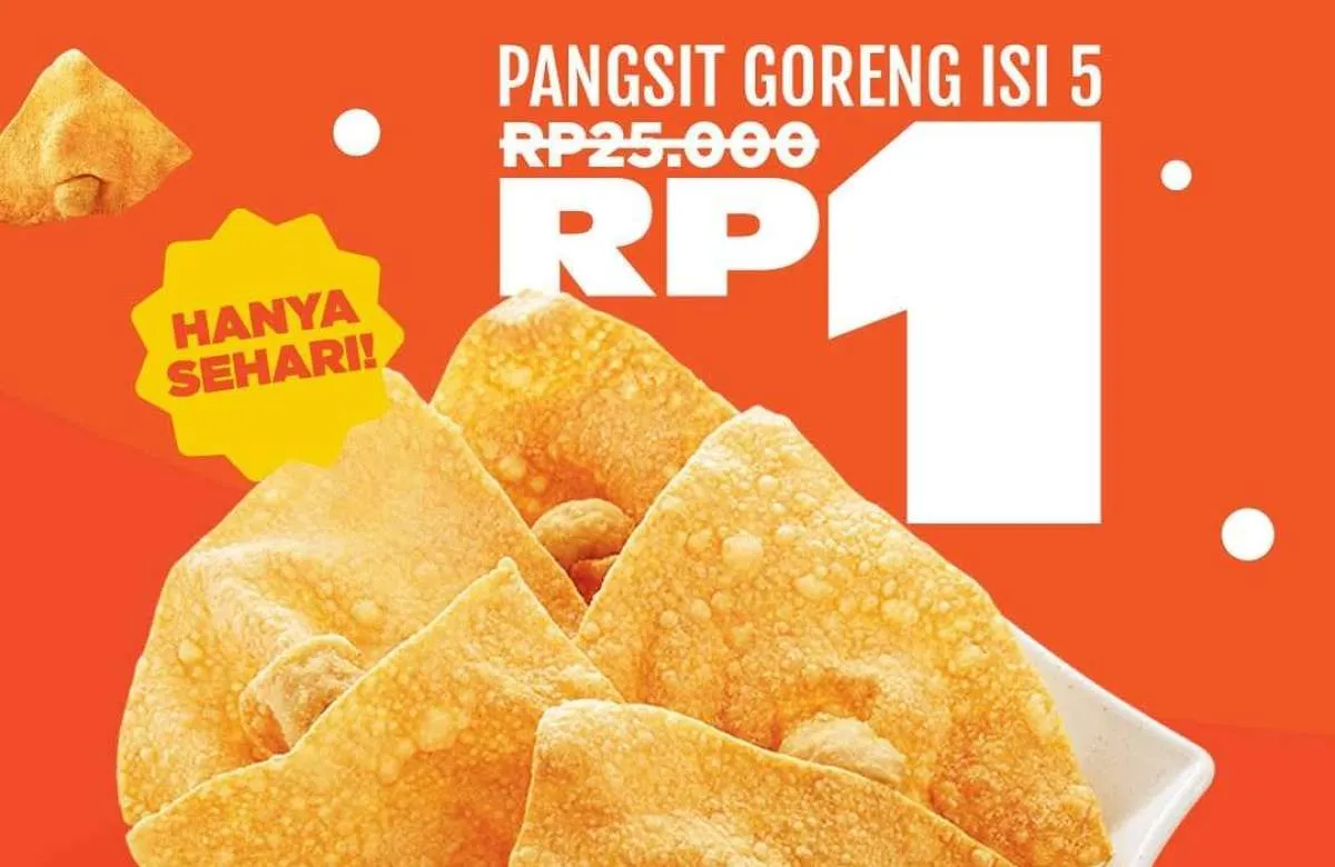 Dikutip dari Instagram bakmigmania, hanya dengan Rp 1, Anda sudah bisa membawa pulang 5 Pangsit Goreng.