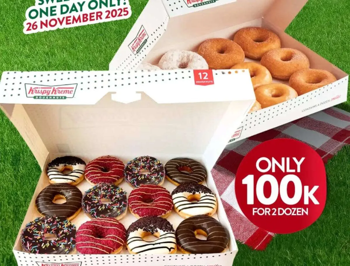 MOMSMONEY.ID - Ada promo Krispy Kreme Happiness Delight dengan paket dua lusin donuts cuma Rp 100.000. Promonya khusus berlaku di tanggal 26 November 2025 saja, ya.