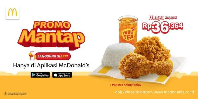Selain itu, setiap hari Kamis juga ada promo Mantap dari McD. Anda bisa makan Ayam Goreng McD komplit hanya Rp 36.000-an saja.