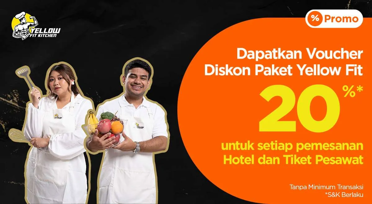MOMSMONEY.ID - Mau pergi liburan hemat tapi tetap bisa sehat? Mau banget! Untuk setiap pembelian produk hotel dan tiket pesawat Anda bisa mendapatkan voucher diskon Yellow Fit Kitchen sebesar 20%.