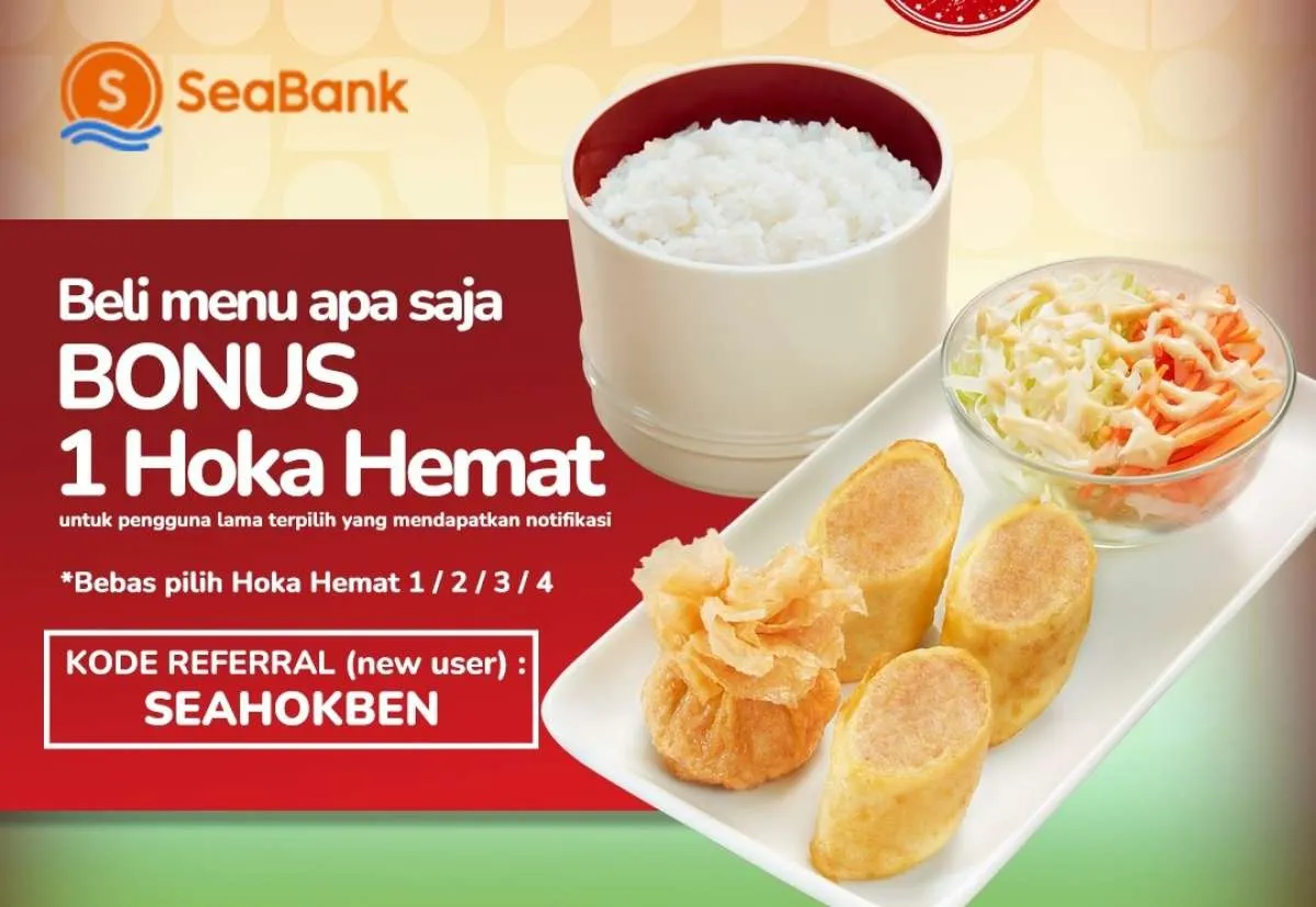 Dikutip dari Instagram HokBen Indonesia, buat Anda pengguna SeaBank, pembelian menu apa saja di HokBen, bisa dapat bonus 1 Hoka Hemat. Anda bebas memilih Hoka Hemat 1/2/3/4.