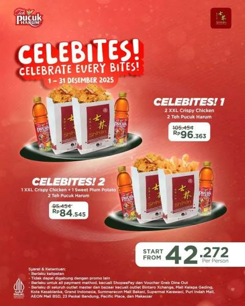 - Celebites 1 (Rp 96.363): 2 XXL Crispy Chicken + 2 Teh Pucuk Harum