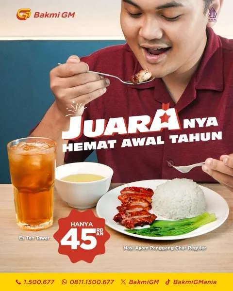 Selain itu, selama Januari 2026, Anda juga bisa menikmati promo Juara di Bakmi GM. Mulai dari Rp 45.000-an saja, Anda sudah bisa makan enak dan kenyang dengan menu Ayam Panggang Char yang spesial.