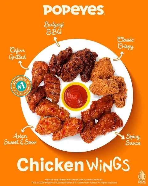 Selain itu, Popeyes juga ada menu spesialnya berupa Chicken Wings yang siap menemani momen ngemil nikmat Anda. Tersedia beragam varian favorit yang dijamin bikin nagih banget.