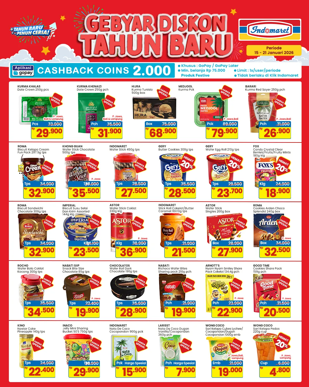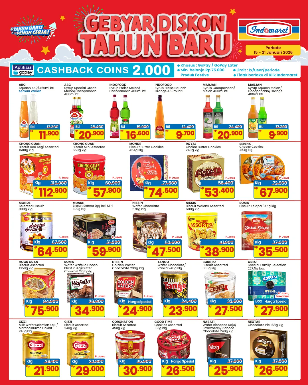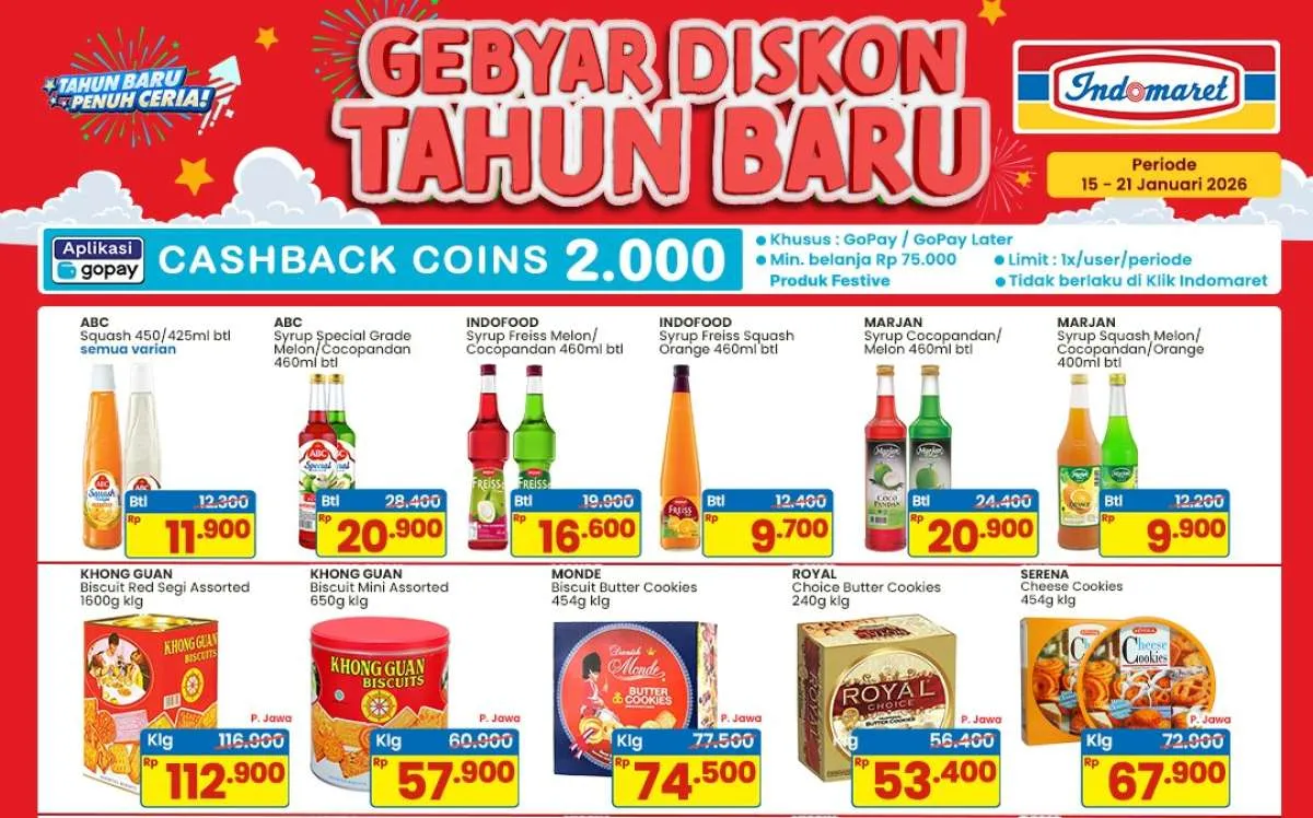 Berlaku 15-21 Januari 2026, promo ini menawarkan berbagai produk mulai dari sirup, biskuit kaleng, hingga kurma dengan harga spesial.