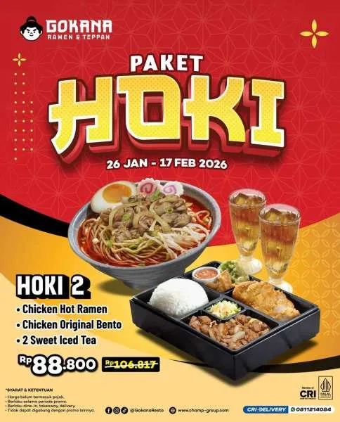 Selain itu, Anda juga masih bisa menikmati promo Paket Hoki dari Gokana lo. Promo ini menyediakan paket lengkap untuk makan berdua mulai Rp 40.000-an saja per orang yang berlaku hingga 17 Februari 2026.