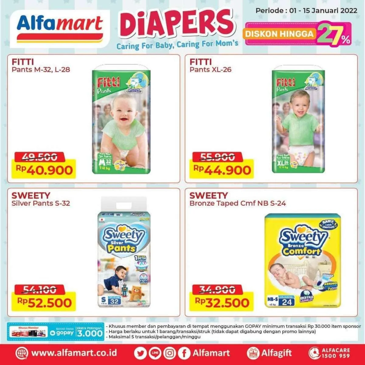Sampai tanggal 15 Januari 2022 mendatang, ada promo Alfamart edisi Diapers, Kebutuhan Rumah Tangga, dan Kebutuhan Dapur yang dapat Anda manfaatkan dengan baik.
