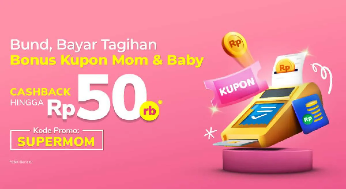 - Anda akan mendapatkan Voucher Cashback untuk pembelian produk di category Mom & Baby sebesar 4.5% hingga Rp50.000 setelah transaksi berhasil di pada produk yang berpatisipasi berikut Listrik PLN, BPJS, Telkom, TV Kabel, PDAM, Tagihan IPL, Angsuran Kredit, Kartu Kredit, Pulsa, Paket Data, Pascabayar, Belajar, Uang Elektronik, Streaming, Voucher Game, Food & Voucher, Hotel, Tiket Pesawat, Tiket Kereta Api, Pajak PBB, E-Samsat, Gas PGN, Premi Asuransi, Biaya Pendidikan dan Penerimaan Negara.