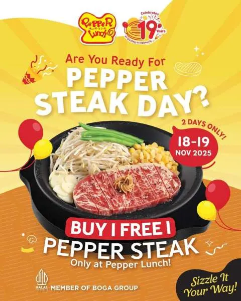 Dapatkan promonya di seluruh Pepper Lunch Indonesia, kecuali Terminal 3 Bandara. Ingat ya, promo hanya berlangsung dua hari saja dari 18-19 November 2025. Jadi, jangan sampai ketinggalan!