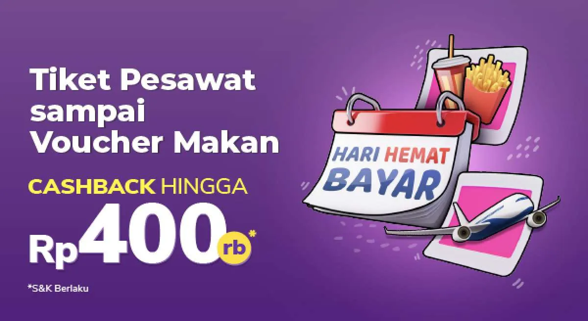 - Metode Pembayaran. Berlaku untuk semua metode pembayaran. Tidak berlaku metode pembayaran Gopay & Gopaylater untuk Tiket Pesawat, Tiket Kereta Api, Hotel, dan Food & Voucher.
