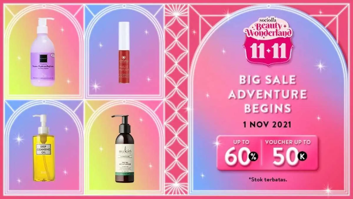 Salah satu tempat belanja online produk kecantikan yang paling populer adalah Sociolla. Nah, hari ini tanggal 1 November 2021, di Sociolla sedang ada promo bernama Big Sale Adventure Begins yang termasuk dalam serangkaian promo Sociolla Beauty Wonderland 11.11.