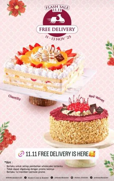 Dikutip dari Instagram Mako Bakery, promo Flash Sale 11.11 di Mako Bakery berlaku untuk setiap pembelian Whole Cake tertentu. Anda bisa memesannya secara online melalui aplikasi Mako atau di www.mako.id. /2025/11/12/1324786140p.jpg)