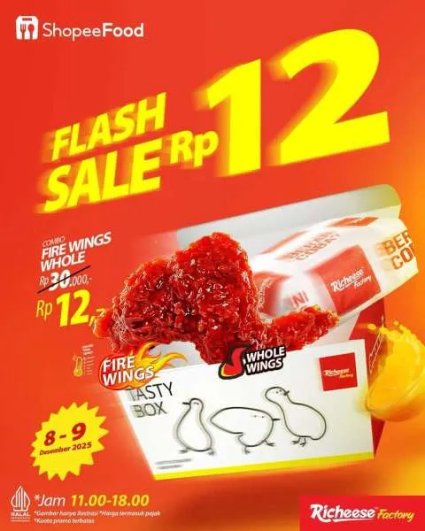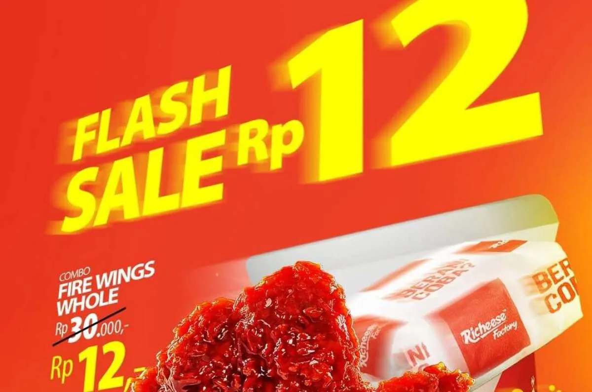 MOMSMONEY.ID - Yuk, serbu promo Flash Sale di Richeese Factory sekarang juga! Hari ini adalah kesempatan terakhir Anda untuk bisa menikmati Combo Fire Wings Whole hanya Rp 12.