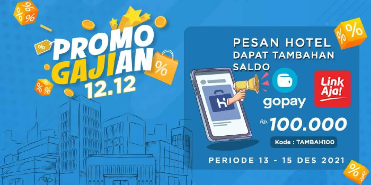 MOMSMONEY.ID - Berakhir hari ini, dapatkan tambahan saldo GOPAY/LINKAJA senilai Rp 100.000 untuk setiap pemesanan hotel bertanda promosi di hotelmurah.com. Pakai kode vouchernya dan promo ini berlaku di Web, Android App dan IOS App.