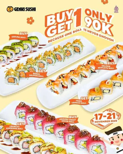 Dikutip dari Instagram Genki Sushi Indonesia, berikut daftar menu promo Buy 1 Get 1 serba Rp 90.000 yang bisa Anda nikmati: