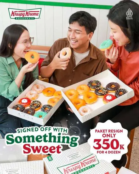 Selain itu, Krispy Kreme juga ada promo Paket Resign yang hemat. Dalam paket ini, Anda bisa mendapatkan empat lusin donat dengan harga spesial.