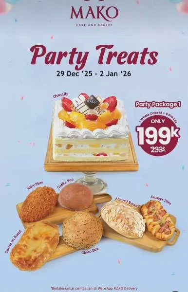 MOMSMONEY.ID - Hari ini menjadi kesempatan terakhir Anda untuk menikmati manisnya kebersamaan melalui promo Mako Bakery Party Treats. Ada berbagai paket kue favorit yang hadir dengan harga lebih hemat lo.