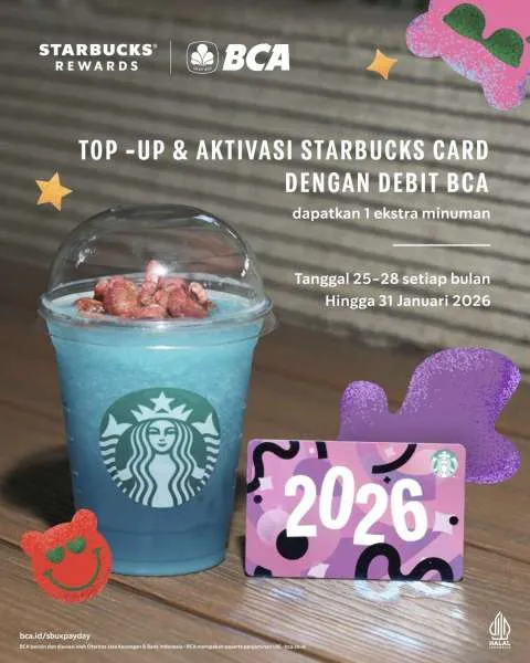 Lalu, untuk Anda pengguna BCA juga ada penawaran menarik di Starbucks hingga 31 Januari 2026. Anda berkesempatan untuk mendapatkan satu ekstra minuman.