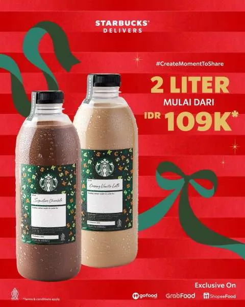 Selain itu, Starbucks juga ada penawaran spesial lainnya berupa paket dua liter minuman dengan harga yang lebih hemat.