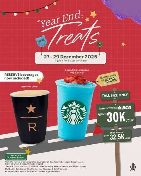 MOMSMONEY.ID - Mau jajan di Starbucks dengan lebih hemat? Buruan ke Starbucks sekarang, karena hari ini kesempatan terakhir memanfaatkan promo Year End Treats pakai BCA. Anda bisa dapat dua minuman favorit hanya Rp 30.000 per cup, lo.
