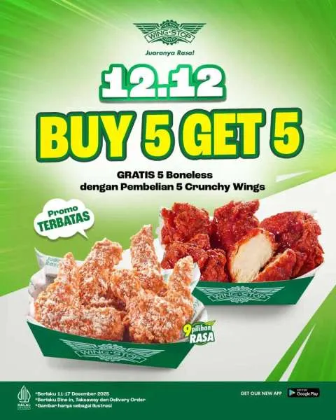 MOMSMONEY.ID - Promo 12.12 dari Wingstop telah menanti Anda. Ada penawaran Buy 5 Get 5 ayam goreng spesial dengan 9 pilihan rasa favorit. Berlaku mulai 11-17 Desember 2025 saja.