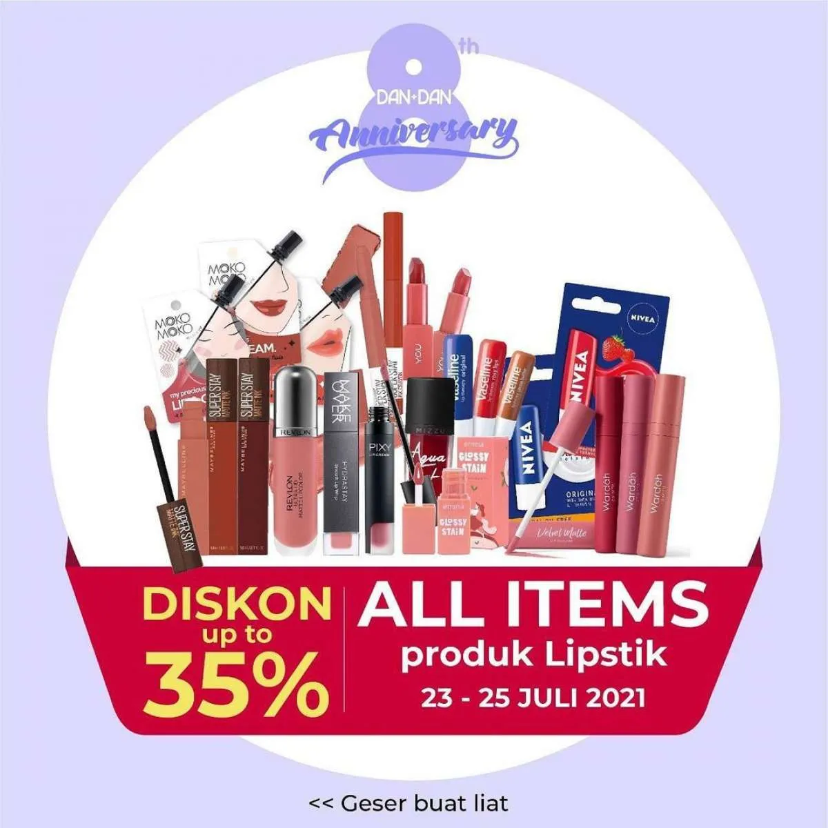 Moms dapat menikmati potongan harga hingga 35% ini dengan membeli secara langsung produk lipstick dan lipcare yang ditawarkan di toko DAN+DAN terdekat.