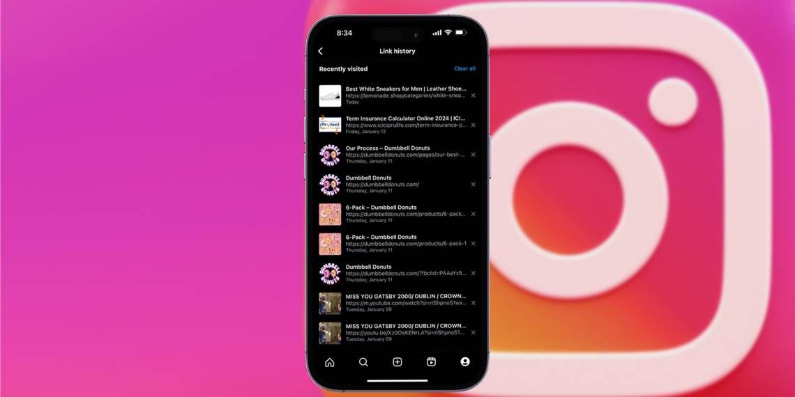 Anda juga akan menemukan opsi untuk menghapus riwayat tautan Anda di menu yang sama. Namun menonaktifkan fitur ini juga akan menghapus semua tautan yang Anda kunjungi dari Instagram baru-baru ini.