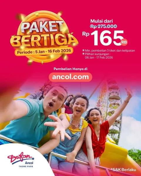 Dikutip dari Instagram @ancoltamanimpian, berikut daftar promo paket bertiga di Ancol yang bisa Anda nikmati dengan harga lebih hemat: