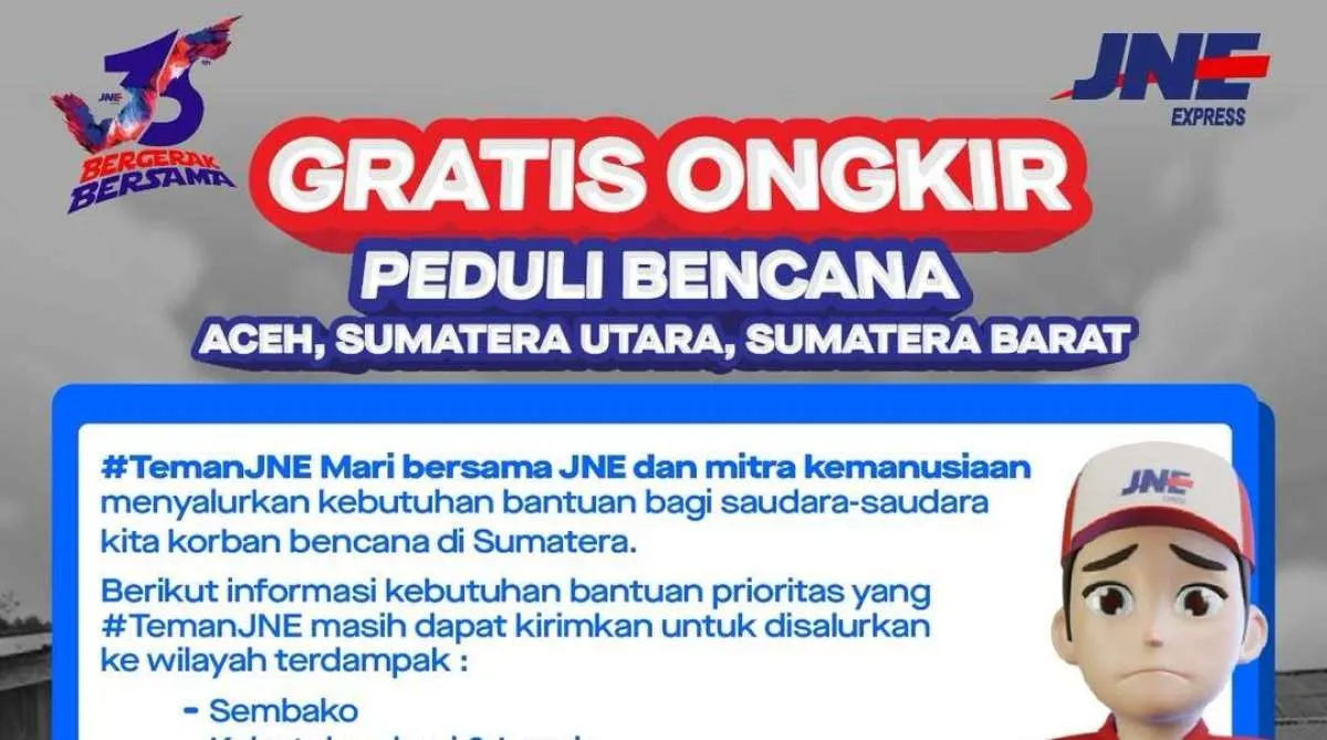 Baca Juga: JNE Gratiskan Ongkir Bantuan Bencana Sumatera Berlaku Nasional 1-10 Desember 2025