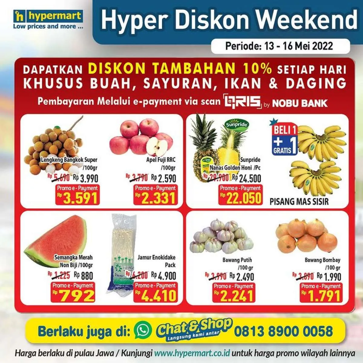 Promo Hypermart Hyper Diskon Weekend ini hanya berlaku di Hypermart area Pulau Jawa saja ya Moms.
