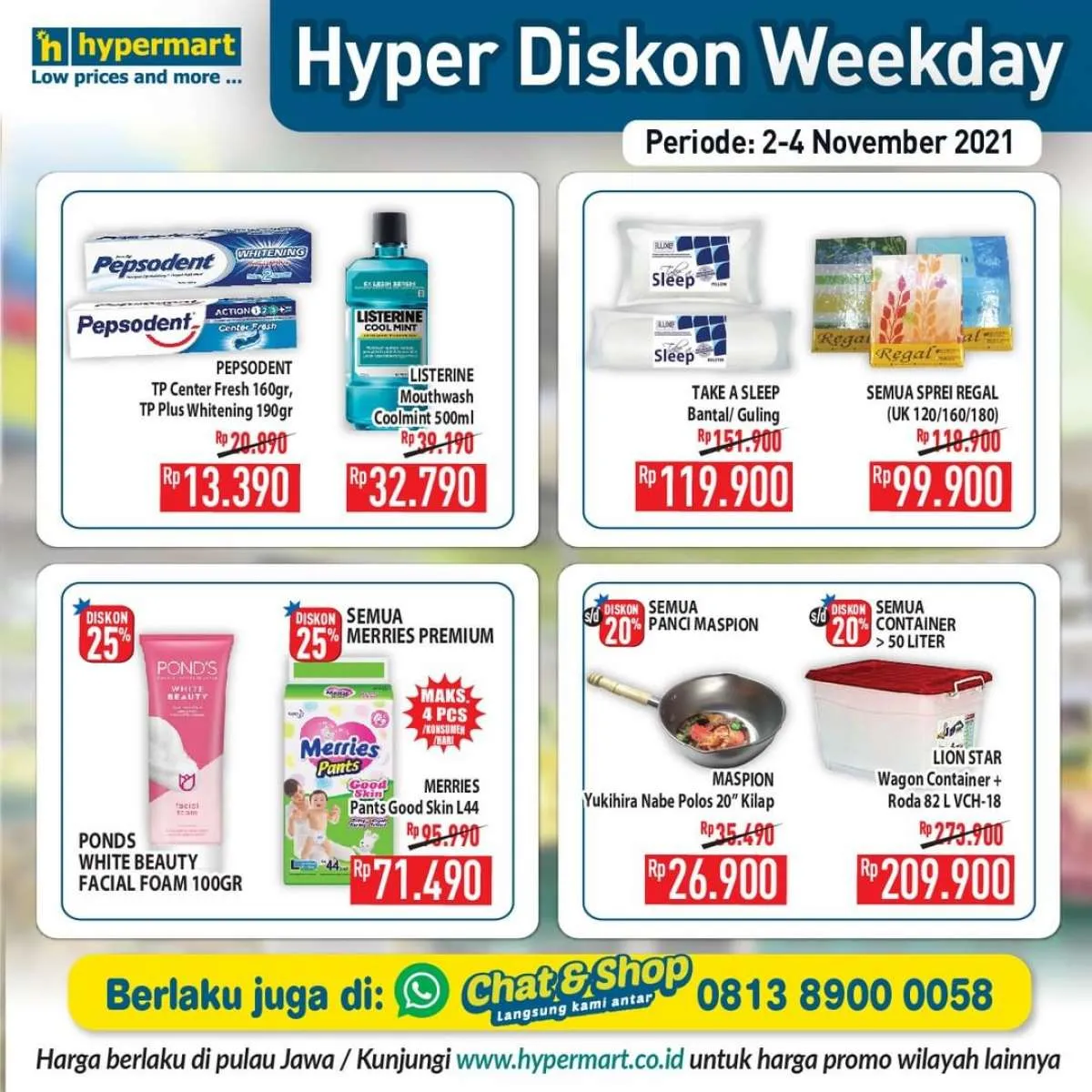 Dari tanggal 2-4 November 2021 mendatang, Hypermart kembali mengadakan promo Hyper Diskon Weekday.