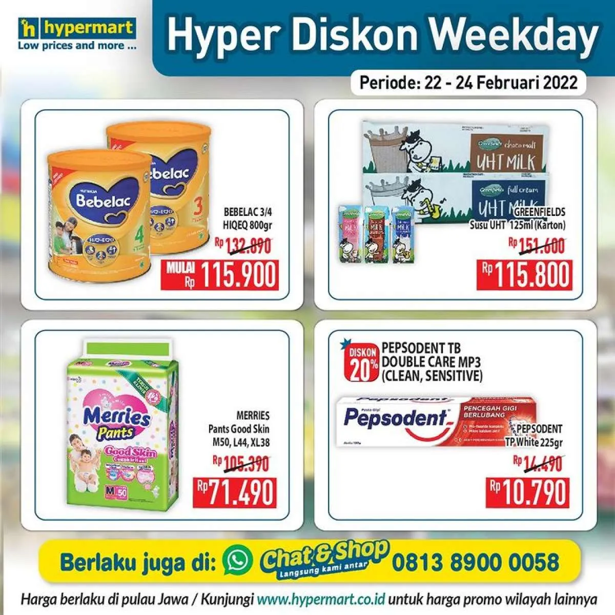 Promo Hypermart Hyper Diskon Weekday ini hanya berlaku di Hypermart area Pulau Jawa saja ya Moms.