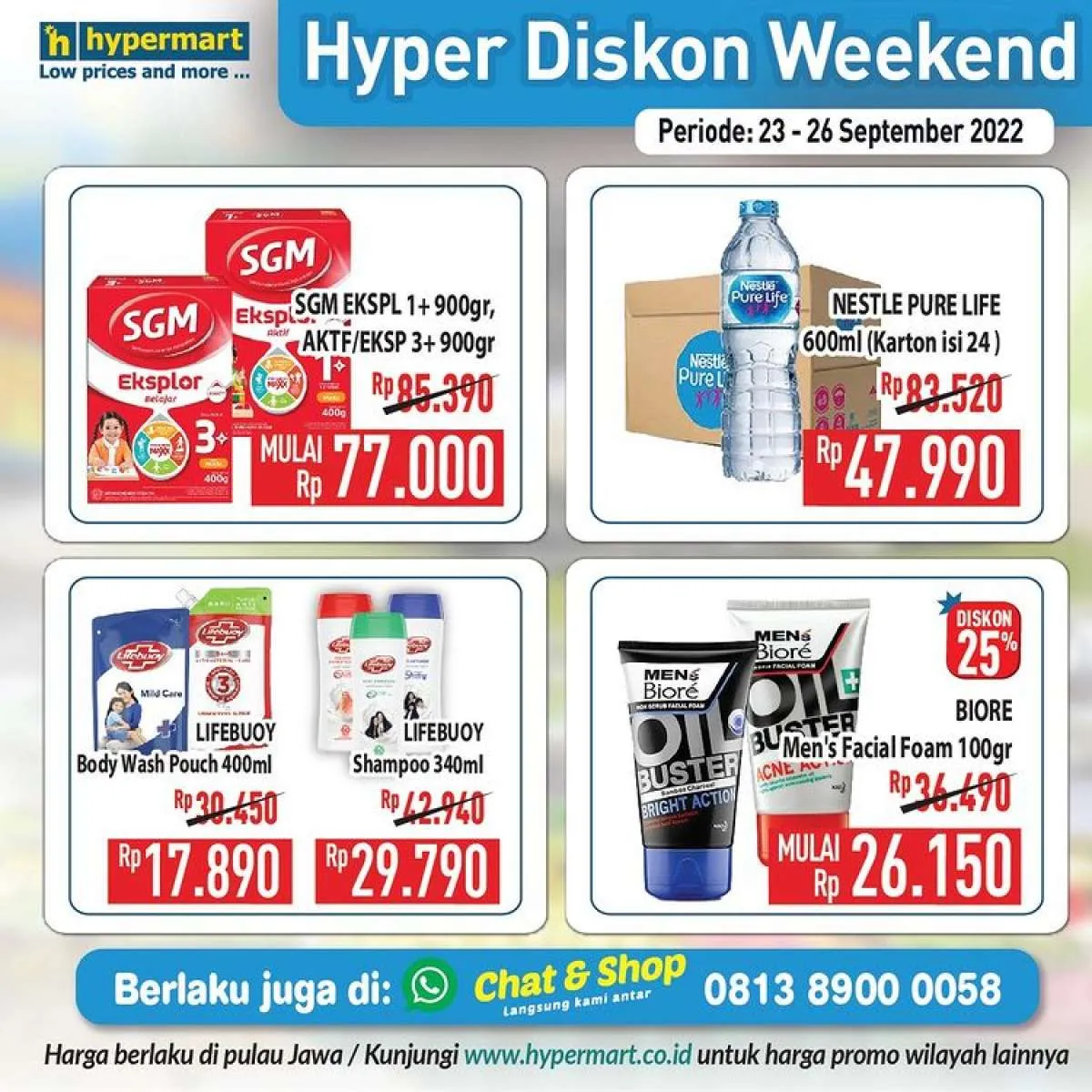 Promo Hypermart Hyper Diskon Weekend ini hanya berlaku di Hypermart area Pulau Jawa ya Moms.