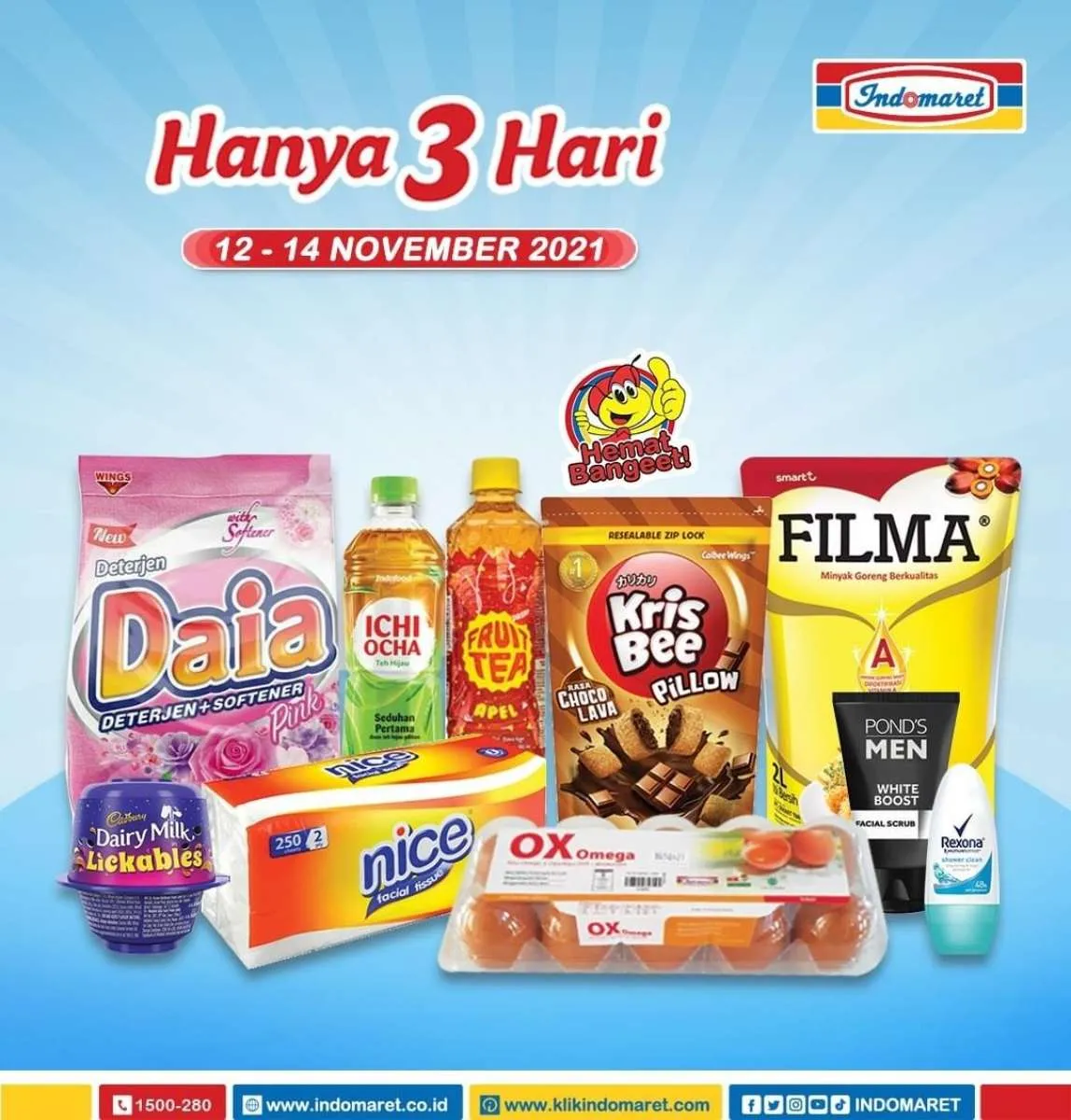Melansir instagram Indomaret (@indomaret), inilah katalog Promo Indomaret Hanya 3 Hari Periode 12-14 November 2021: