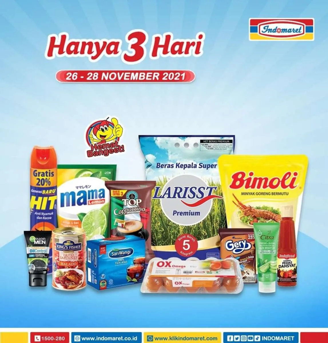 Potongan harga pada Promo Indomaret Hanya 3 Hari Periode 26-28 November 2021 dapat Anda nikmati dengan mengunjungi toko Indomaret terdekat di kota Anda.