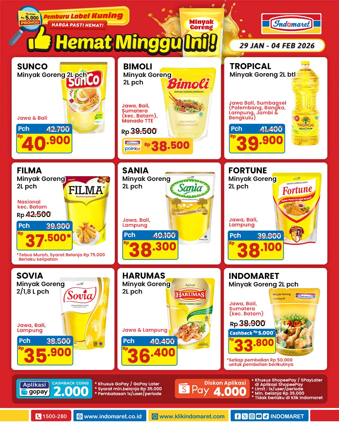 Selagi promo masih berlangsung, Anda dapat mencatat kebutuhan minyak goreng yang telah habis dan melengkapinya kembali dengan memanfaatkan promo Indomaret Minyak Goreng Hemat periode 1-4 Januari 2026.