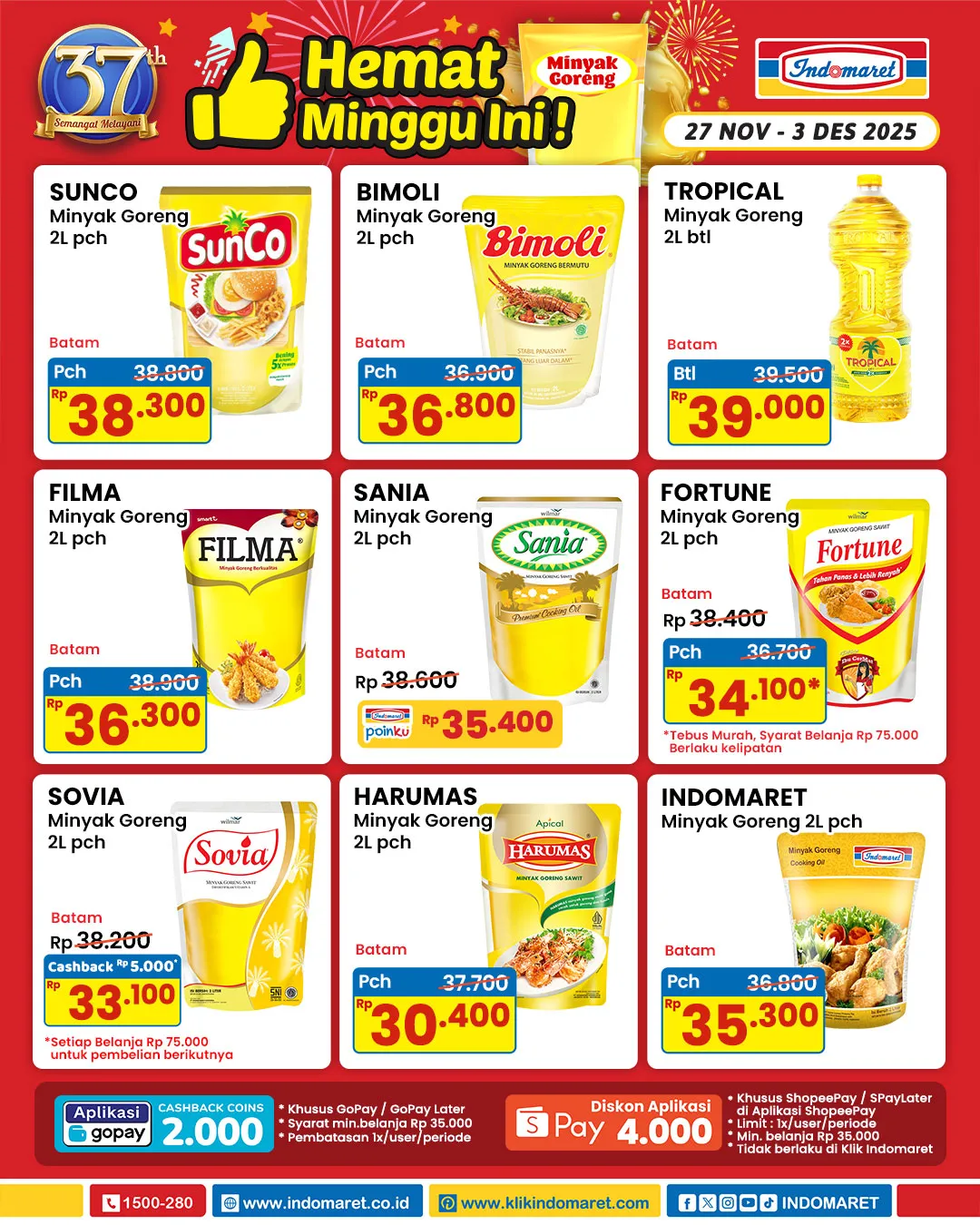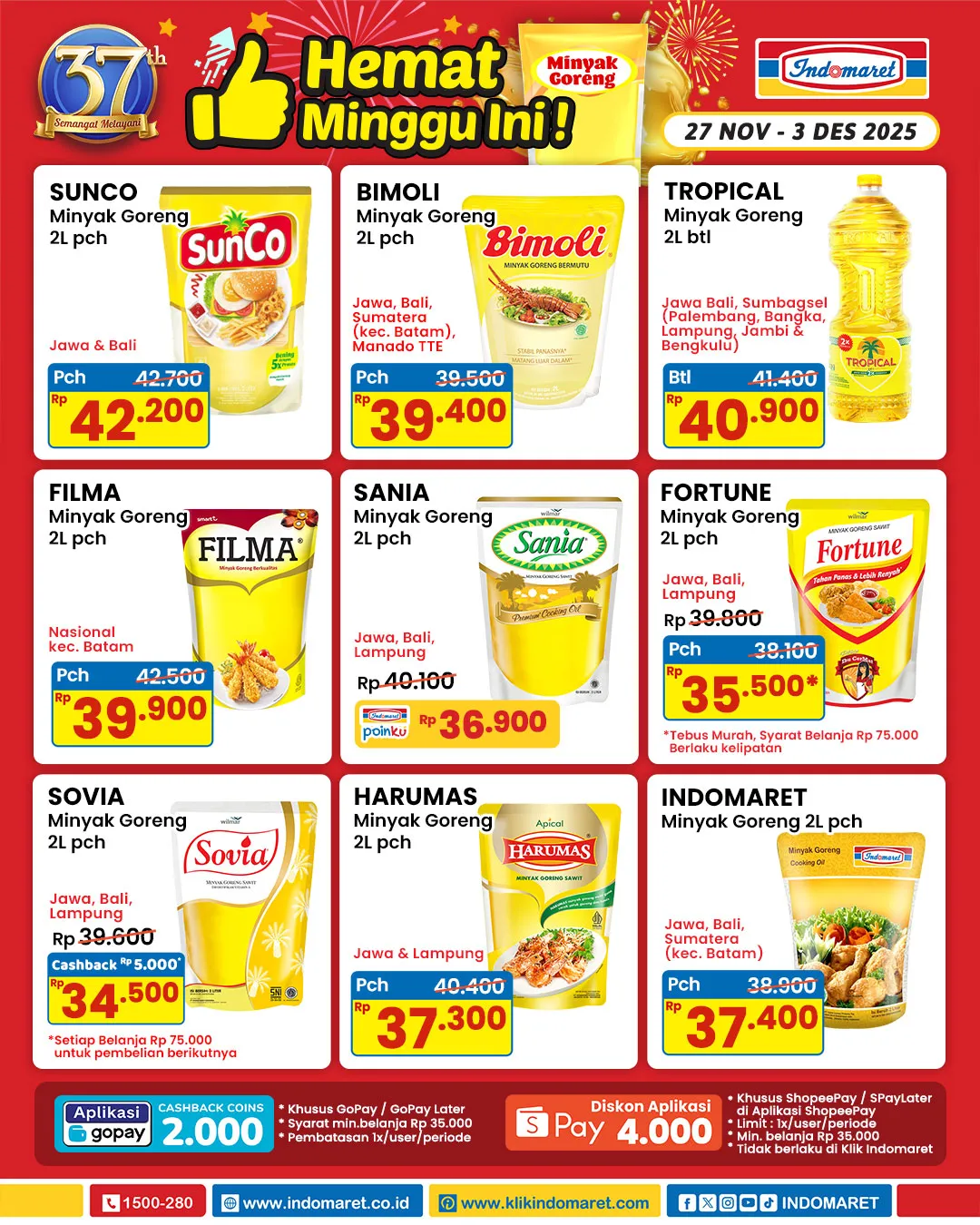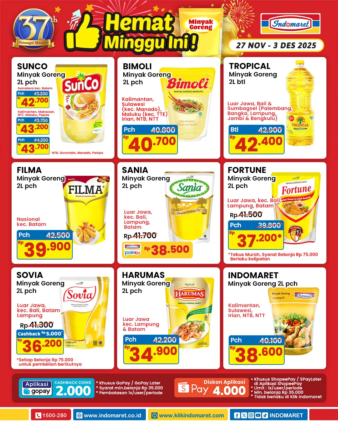 Melansir Instagram Indomaret (@indomaret), inilah katalog promo Indomaret Minyak Goreng Hemat periode 27 November-3 Desember 2025: /2025/11/28/479123602o.jpg)