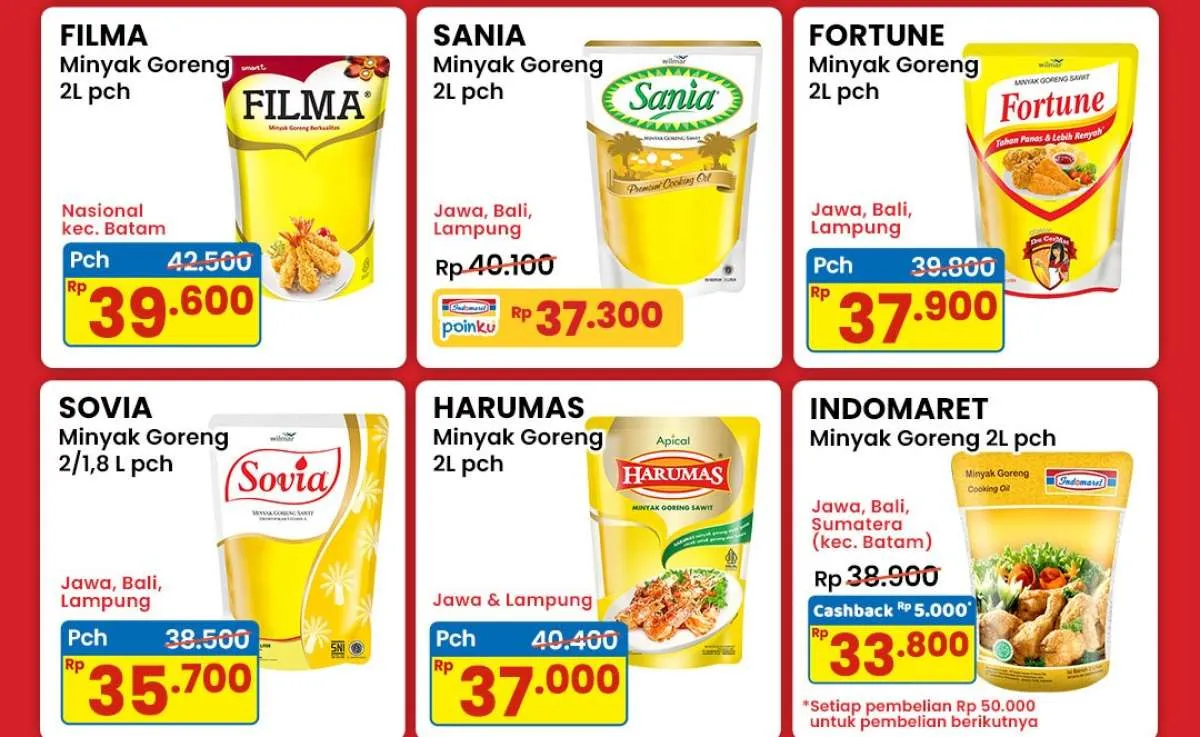 Paling murah ada Harumas 2 Liter Kemasan Pouch yang dibanderol dengan harga Rp 30.000. Harga ini berlaku khusus untuk wilayah Batam.
