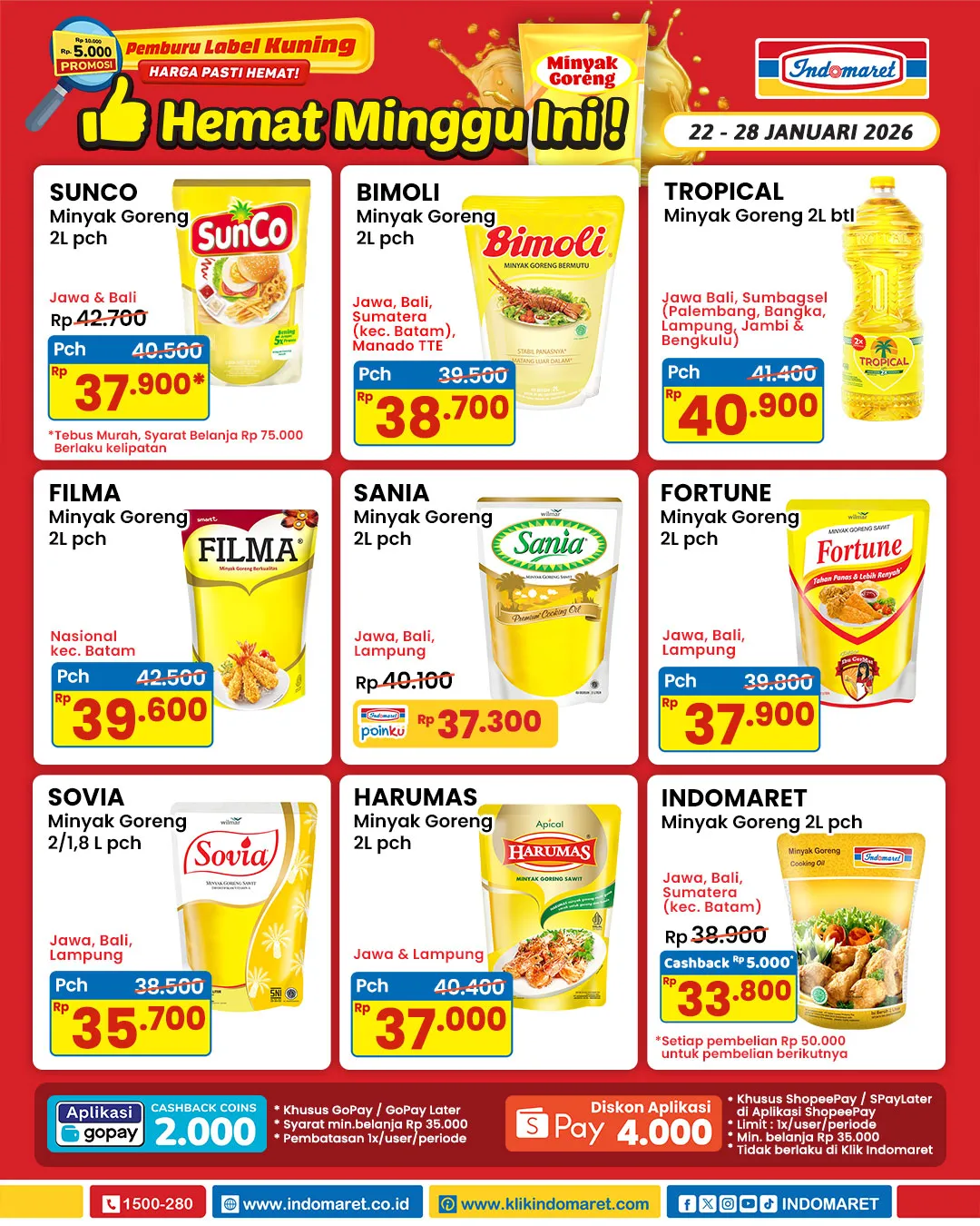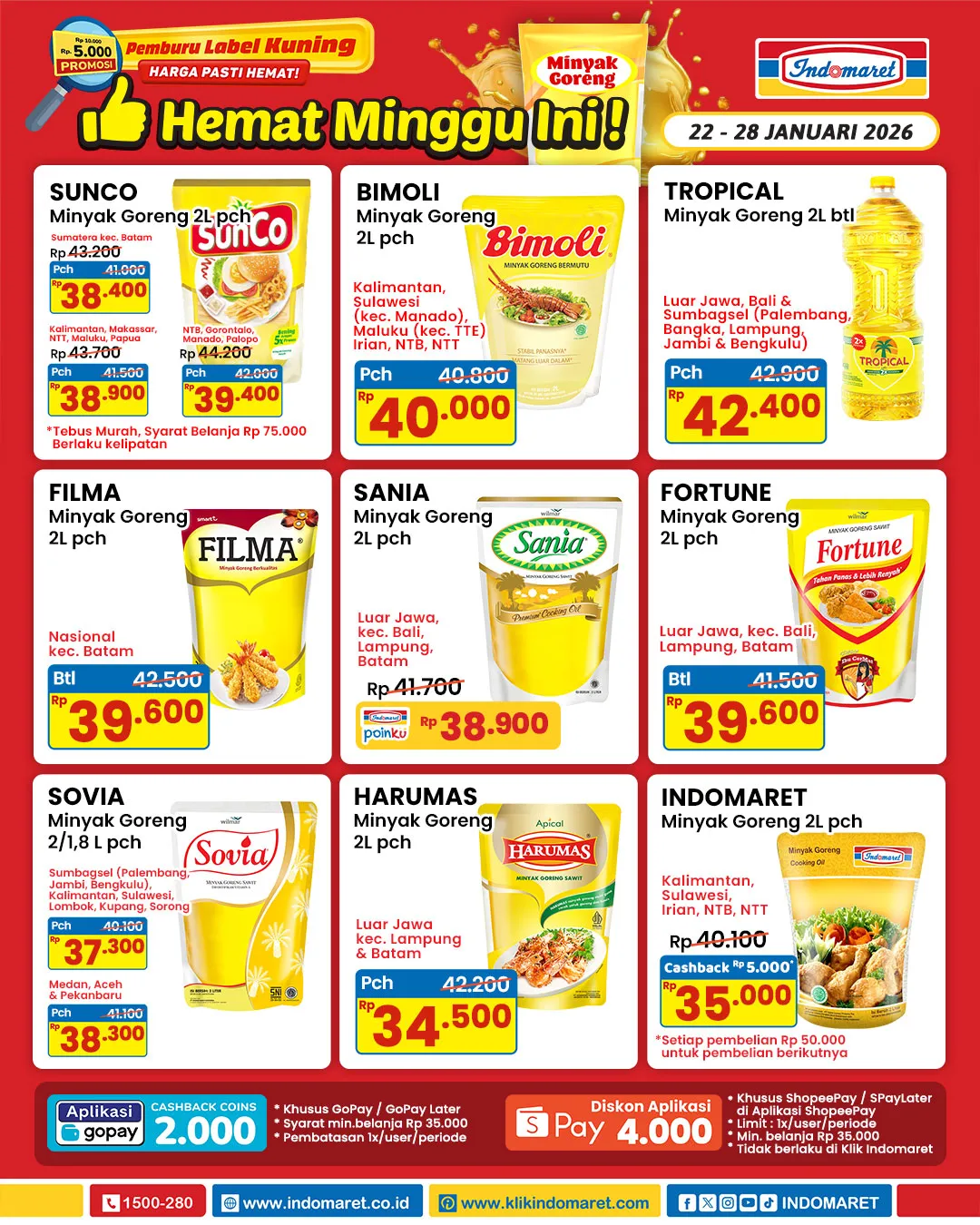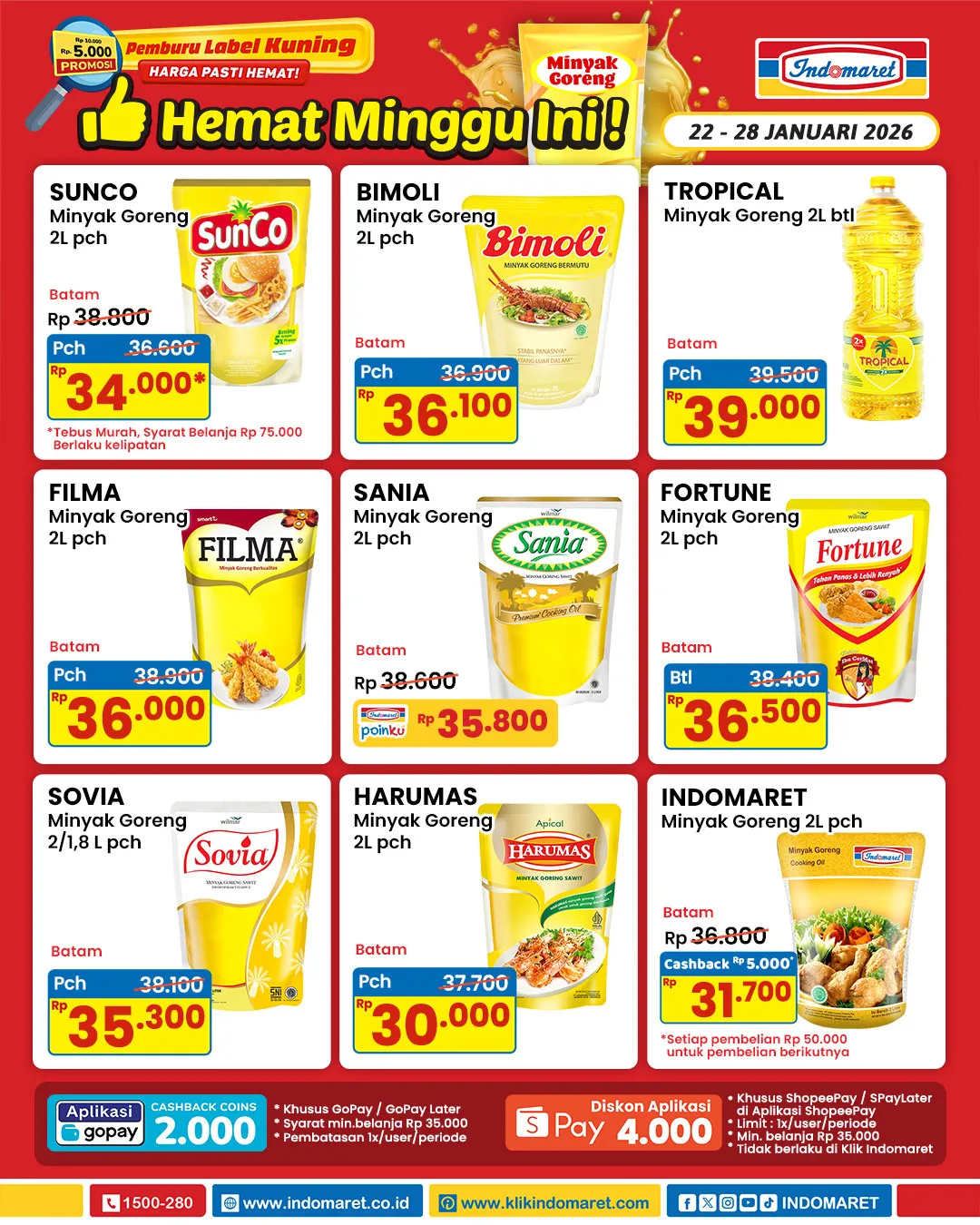 Melansir Instagram Indomaret (@indomaret), inilah katalog promo Indomaret Minyak Goreng Hemat periode 22-28 Januari 2026: /2026/01/26/1415937924o.jpg)